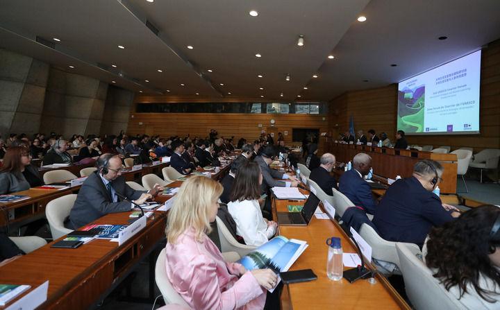 2024年4月15日,在位于法国巴黎的联合国教科文组织总部,与会代表出席“文明交流互鉴理念国际研讨会”。新华社记者 高静 摄