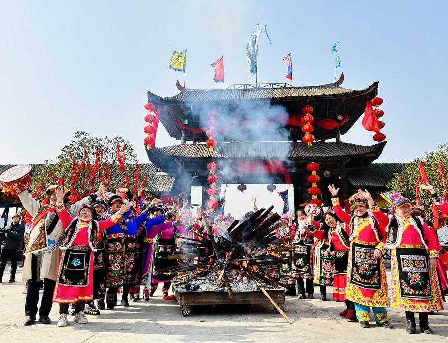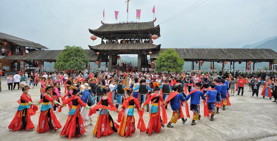 羌年期间热闹的石椅羌寨。新华社发