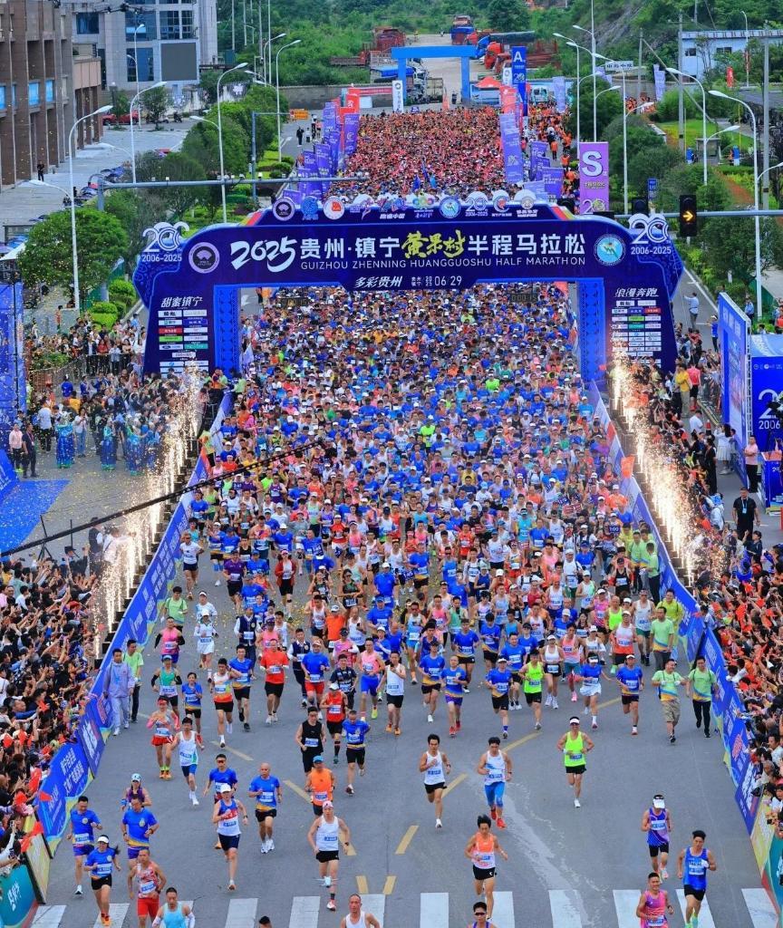 6月29日,2025贵州·镇宁黄果树马拉松鸣枪开跑,这场半马赛事共12000人参赛。在此两周前,2025多彩贵州马拉松超级联赛(第三站)蒙牛·贵阳马拉松更是吸引了26个国家和地区的35000名跑者齐聚林城,感受“爽爽贵阳”的独特魅力。