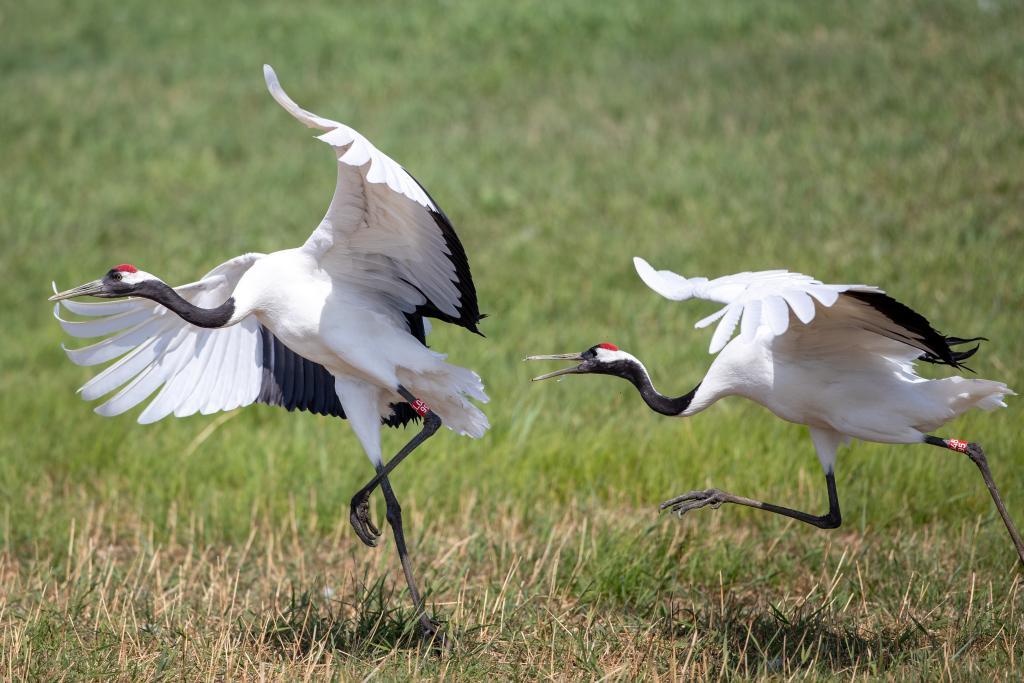 “鹤爸鹤妈轮流孵化,33天后‘鹤宝宝’就破壳出生了。”天刚蒙蒙亮,黑龙江省扎龙国家级自然保护区管理局散养鹤监测组组长徐惠就来到辖区监测散养丹顶鹤繁殖情况。徐惠说,在湿地散养的丹顶鹤,是经过人工繁育的“过渡种群”,它们的后代长大后会被野化放归。