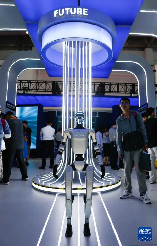 7月17日,观众观看宇树机器人表演。新华社记者 丁洪法 摄