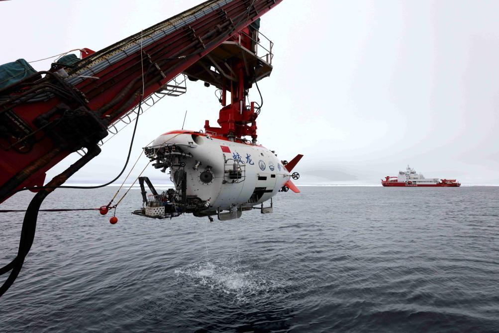 图为“蛟龙”号在北极冰区深潜归来时。新华社记者刘诗平 摄