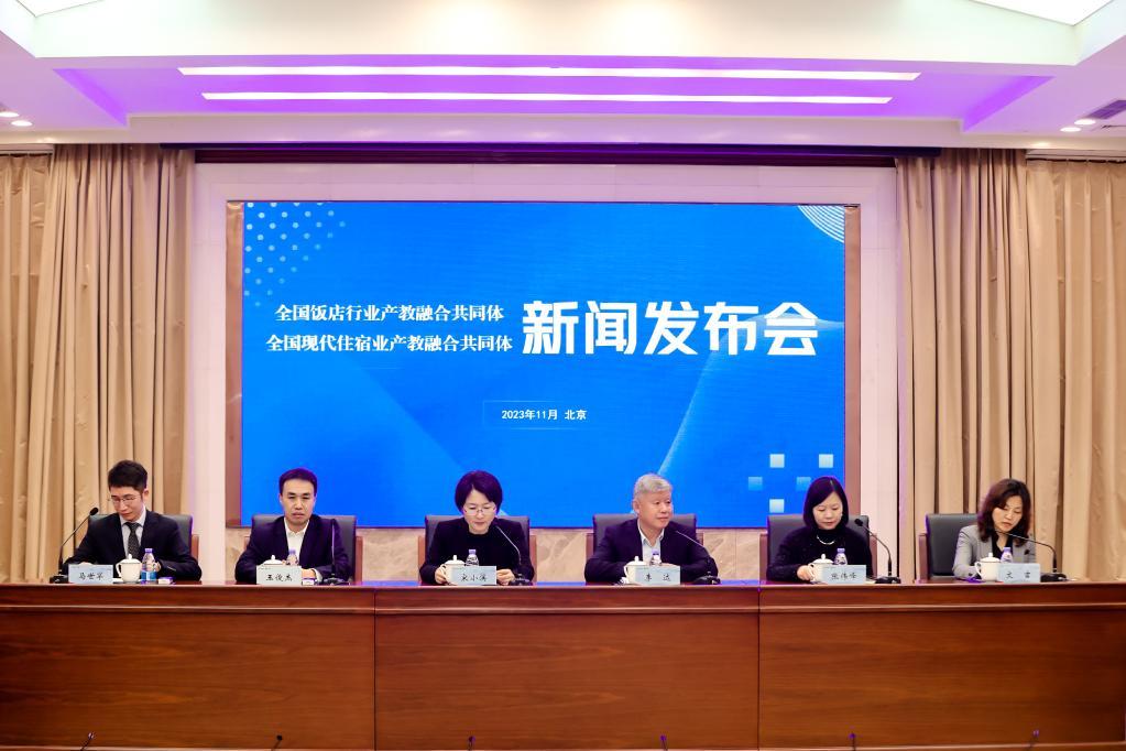 2023年11月21日,由中国饭店协会联合全国饭店行业产教融合共同体、全国现代住宿业产教融合共同体各牵头单位共同举办的共同体成立新闻发布会在北京举行。(中国饭店协会供图)