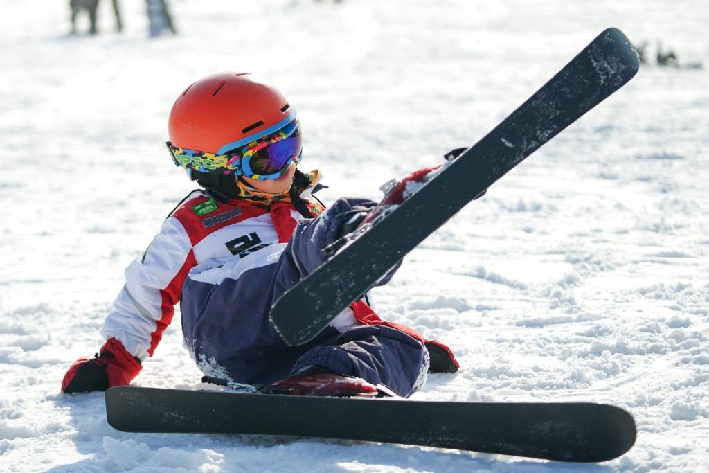 2023年11月18日,一名小朋友在吉林市万科松花湖度假区滑雪。新华社记者许畅摄