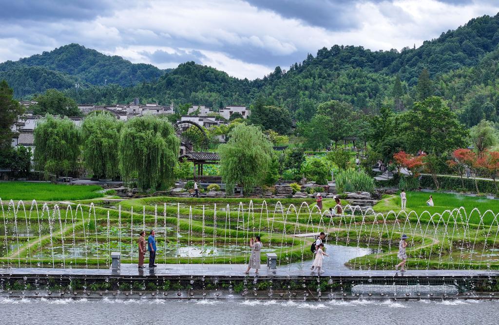 游客在西递古村落游玩赏景(2024年7月25日摄)。新华社记者 刘军喜 摄