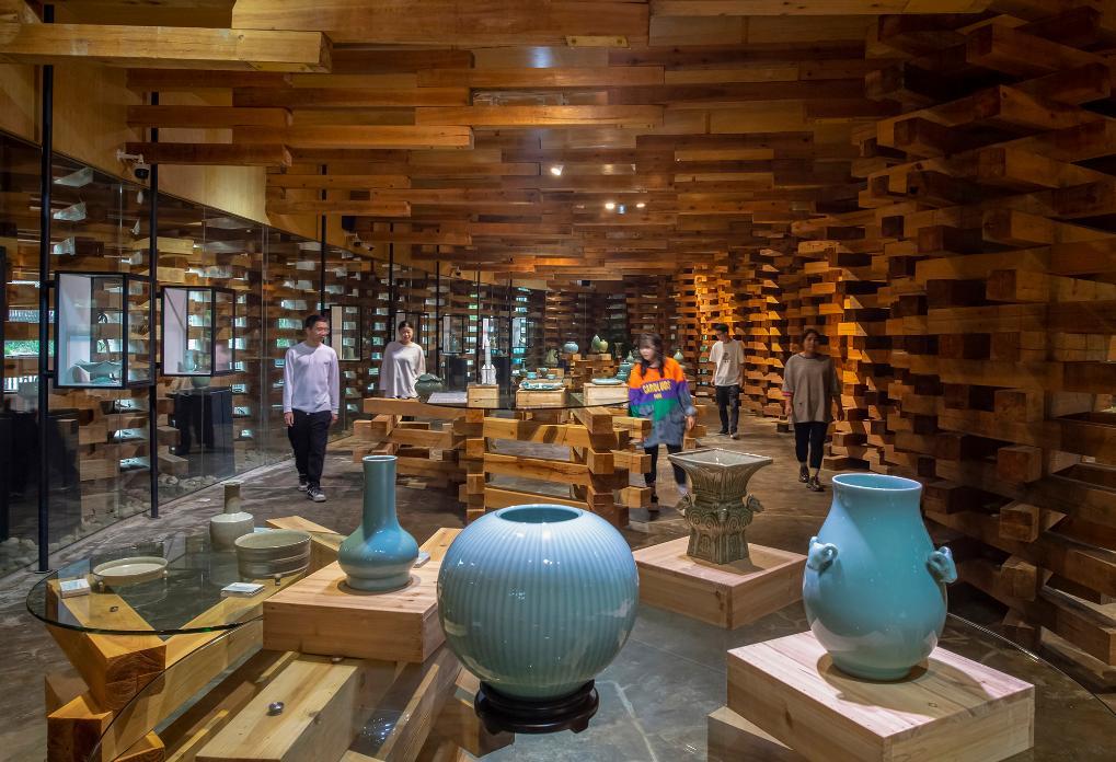 溪头村“国际竹建筑双年展”上展示的龙泉青瓷(2023年5月13日摄)。新华社发(张有钢 摄)