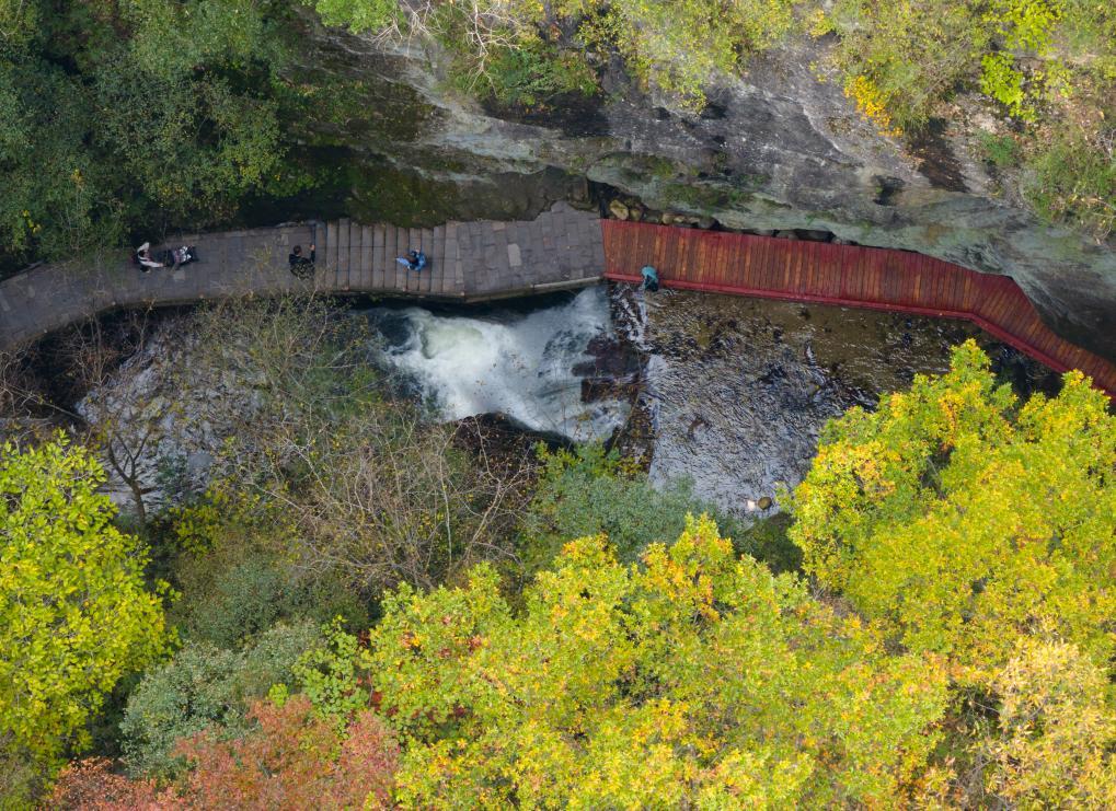 游客在位于朱家湾村的牛背梁国家森林公园内游览(2023年10月21日摄)。新华社记者 邵瑞 摄