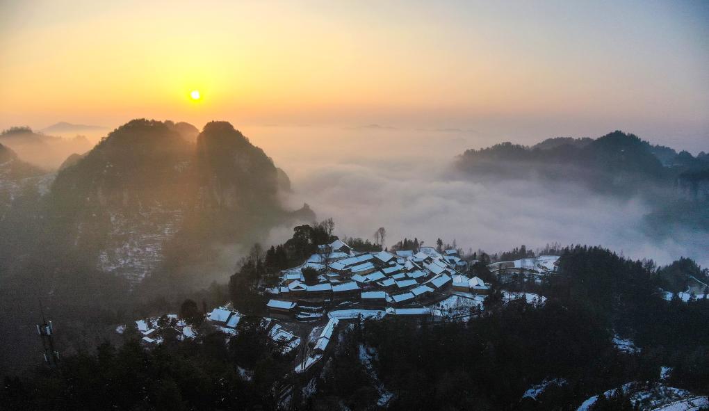 十八洞村雪后景色(2022年2月24日摄)。新华社发(龙恩泽摄)
