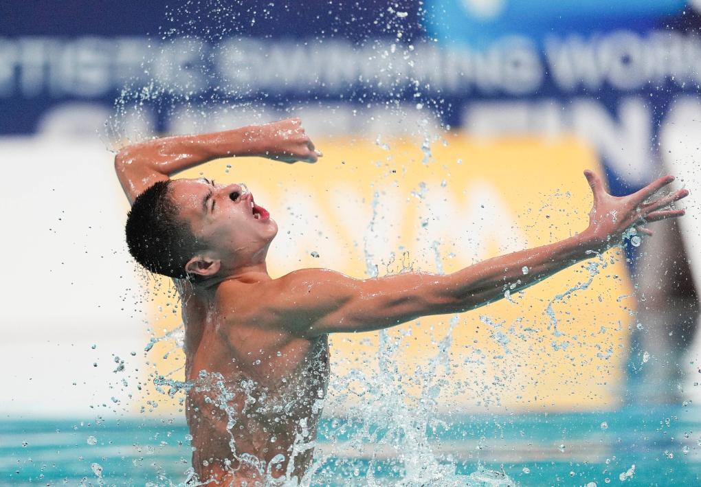 备受关注的集体自由自选比赛中,中国队再度亮出曾在巴黎奥运会上夺冠的经典节目《万有引力》,并凭借精湛演出获得324.3538的高分,力压对手夺冠。日本队和西班牙队分列第二、三位。