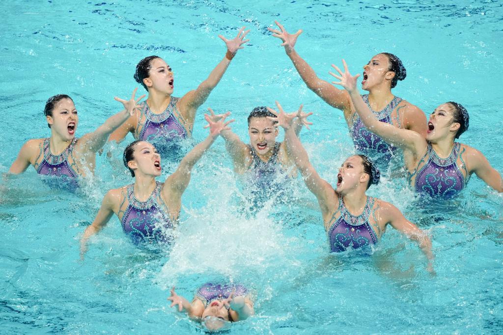 6月14日,中国队在集体自由自选决赛中。新华社记者 李一博 摄