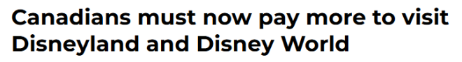 想去美国加州的迪士尼乐园(Disneyland Resort)或佛罗里达的迪士尼世界(Disney World Resort)的加拿大游客,可能要准备多花点钱了——具体花多少,要看你打算什么时候去。