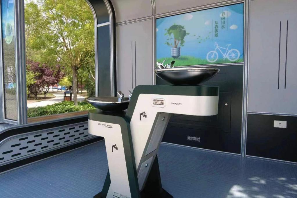 在白洋淀高铁站站前广场一角,一个极具现代化风格的直饮水景观亭总能吸引来往游人的目光。该景观亭设有休息座椅,具备手机充电、夜间照明等功能,饮水平台可提供冷热水。