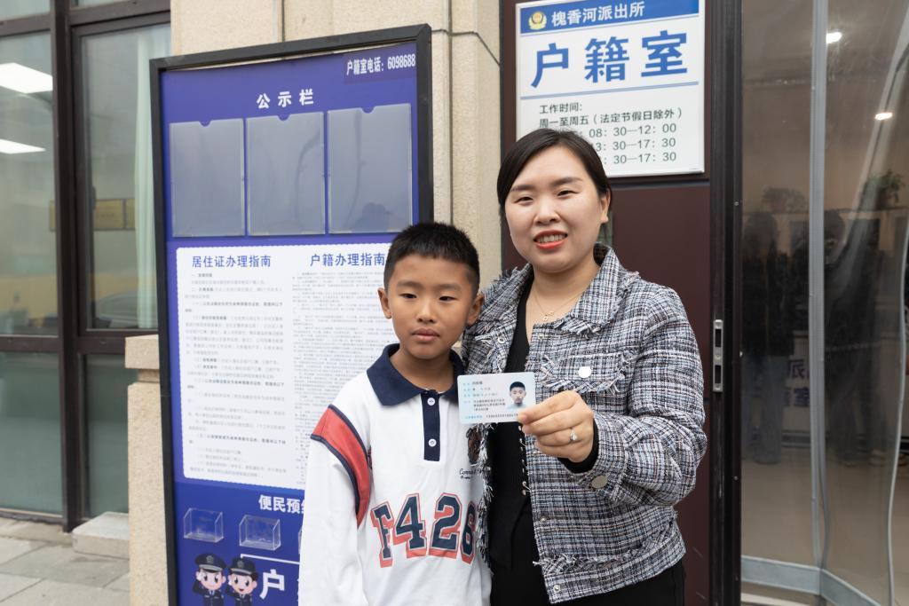 雄安新区容东片区一儿童拿到带有“河北雄安新区”字样的身份证。(受访者供图)