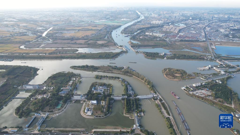 鸟瞰淮安水利枢纽局部(无人机照片,2023年10月28日)。新华社记者 刘诗平 摄