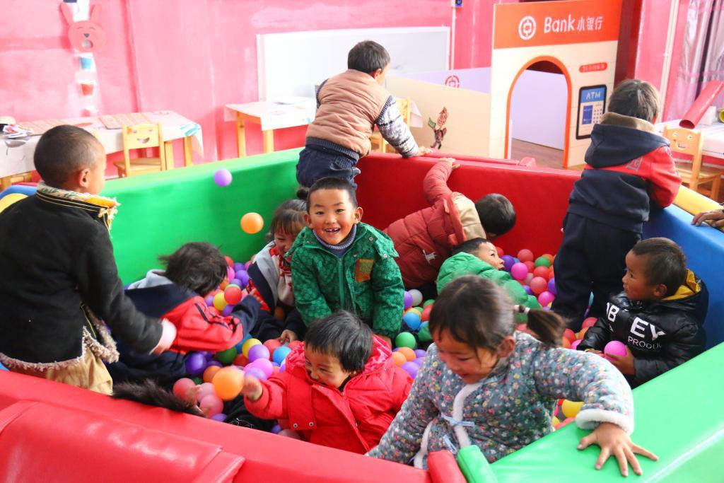 在距离阿里陕西实验学校约50公里的噶尔县扎西岗乡幼儿园里,12名4至6岁的孩子在玻璃暖廊里搭积木、做游戏,外面的风雪和寒气丝毫影响不了他们的热情。