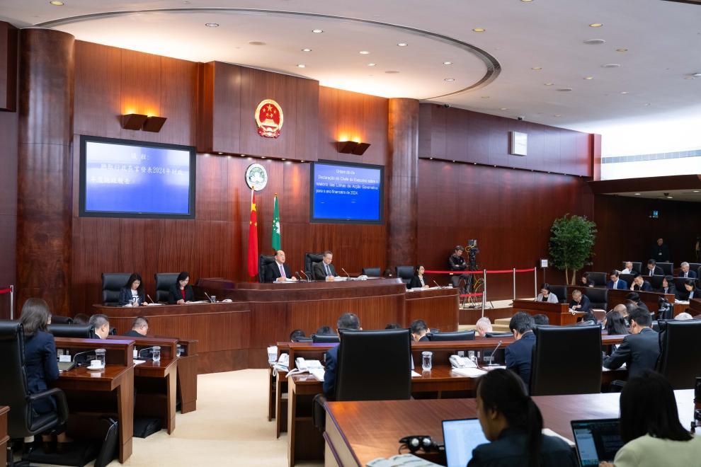 11月14日,澳门特区行政长官贺一诚在特区立法会发表2024年财政年度施政报告,题为《巩固提升,多元发展》。新华社记者 张金加 摄