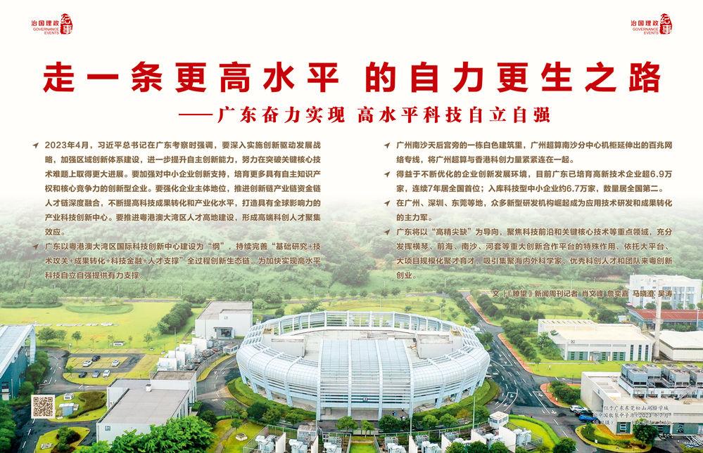 ◇广东以粤港澳大湾区国际科技创新中心建设为“纲”,持续完善“基础研究+技术攻关+成果转化+科技金融+人才支撑”全过程创新生态链,为加快实现高水平科技自立自强提供有力支撑。
