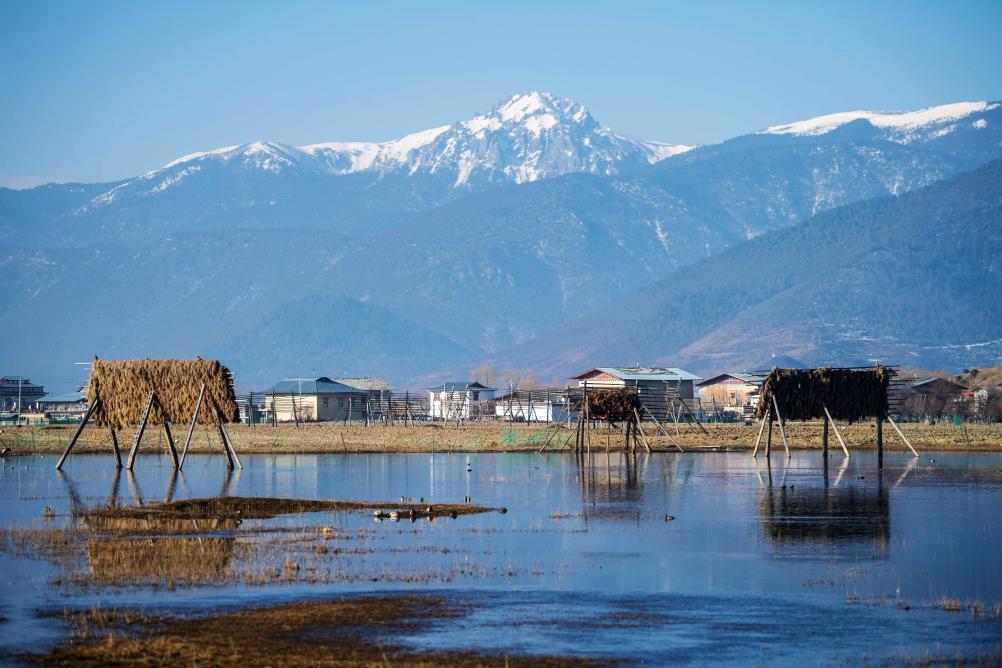 冬日的蓝月谷云雾弥漫,白雪点缀,别样美丽。