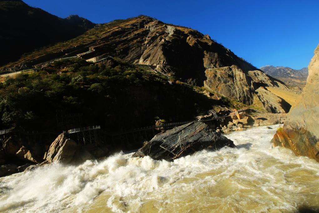 11月26日,列车驶过虎跳峡金沙江铁路大桥。