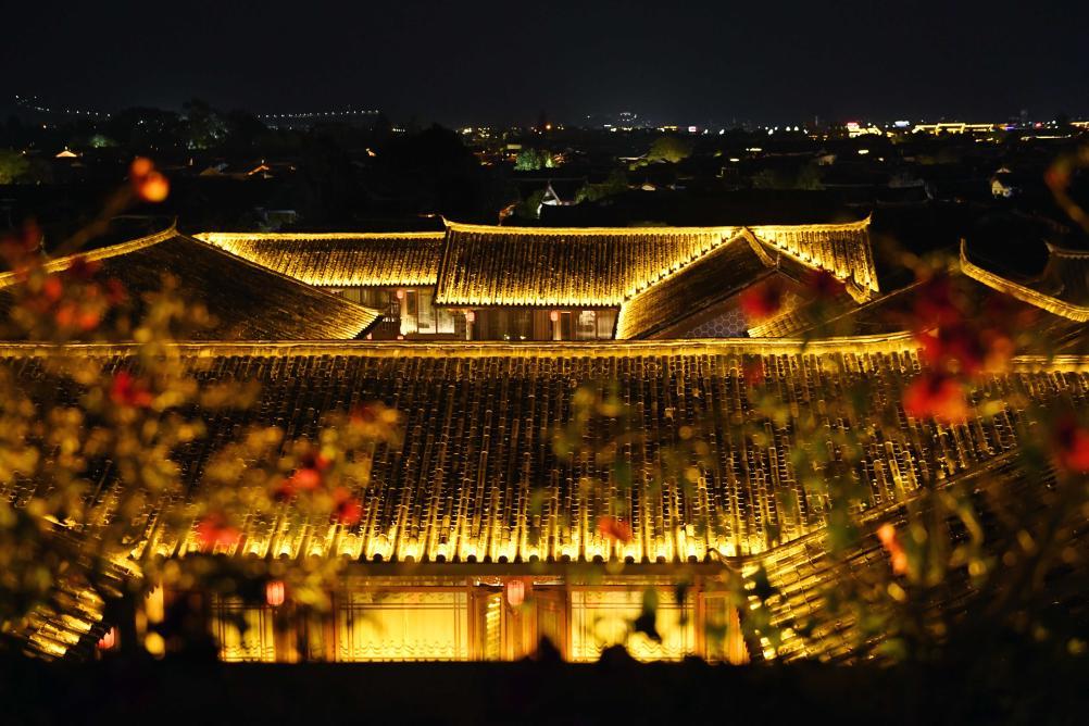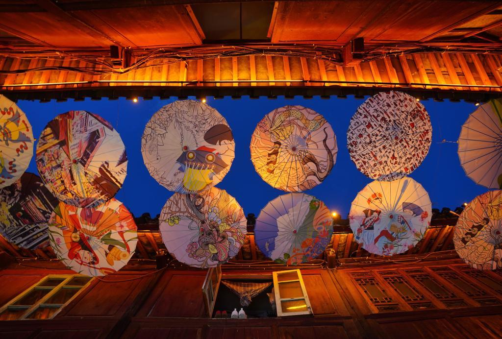 夜色中的丽江古城,灯光璀璨,油纸伞古街散发迷人魅力。