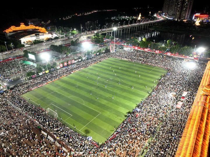 2023年7月29日,夜幕下的“村超”总决赛现场。 新华社记者 欧东衢 摄