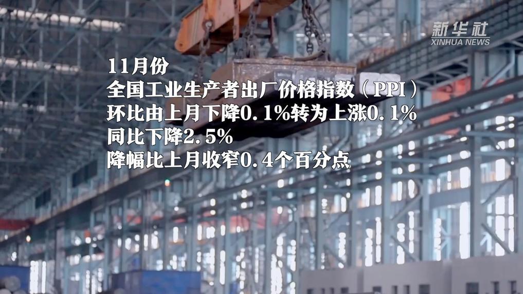 中国国家统计局12月9日发布数据显示,11月份,全国居民消费价格指数(CPI)同比上涨0.2%。11月份,全国工业生产者出厂价格指数(PPI)环比由上月下降0.1%转为上涨0.1%;同比下降2.5%,降幅比上月收窄0.4个百分点。11月CPI和PPI数据均显示出经济基本面进一步整固、政策支持质效进一步提升、经济内生动能进一步增强。