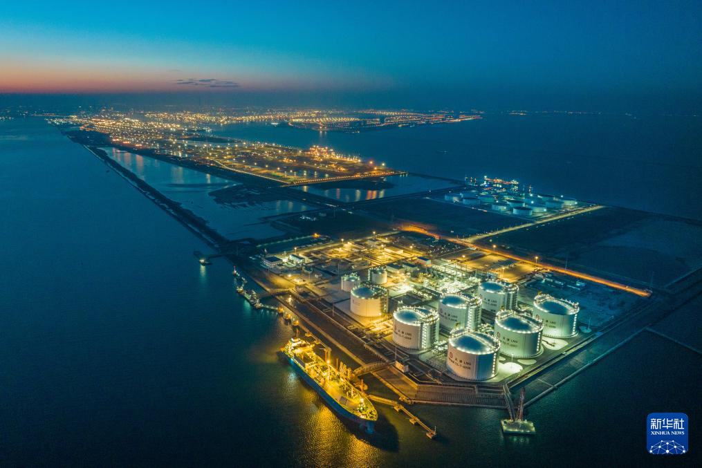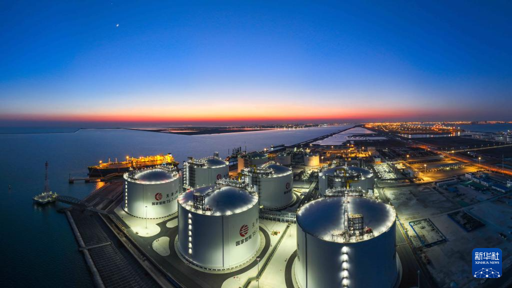 这是1月3日傍晚拍摄的国家管网天津LNG接收站(无人机照片)。新华社发(杜鹏辉 摄)