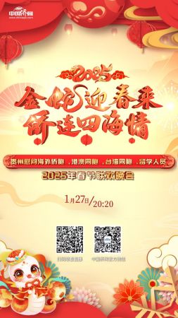 由贵州省侨务办公室、贵州省归国华侨联合会、贵州省台湾同胞联谊会、贵州省欧美同学会、贵州海外联谊会主办,贵州广播电视台协办的《金蛇迎春来 侨连四海情》——贵州慰问海外侨胞、港澳同胞、台湾同胞、留学人员2025年春节联欢晚会将于1月27日(腊月二十八)20:20播出。今年的贵州省慰侨春晚以“金蛇迎春来 侨连四海情”为主题,以“年味”“侨味”“贵州味”为重点,展现贵州的民族风情、春节习俗与经济发展成就,传递海外侨胞对家乡的深切思念与美好祝福。
