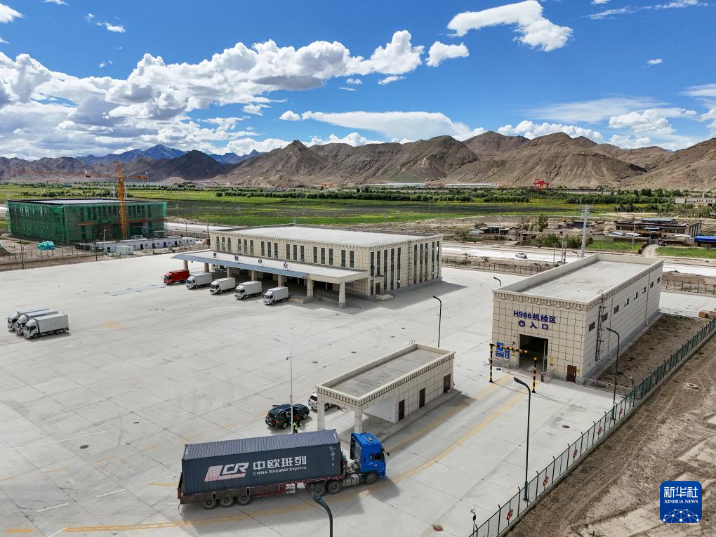 走进日喀则国际陆地港,一辆辆运载日用百货的大型卡车驶入查验场,将“中国造”源源不断送往尼泊尔等南亚国家;