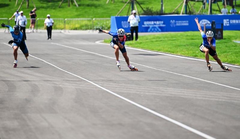 8月13日,2025年成都世运会速度轮滑公路赛(100米争先)女子决赛在成都舒悦公园举行。新华社记者 谢剑飞 摄