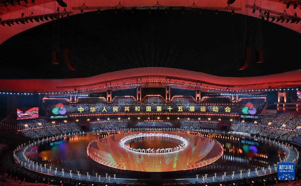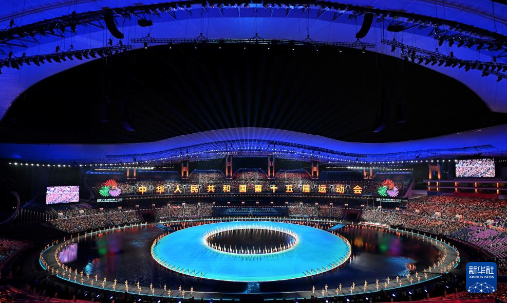 新华社广州11月9日电 中华人民共和国第十五届运动会9日晚在广东省广州市隆重开幕。中共中央总书记、国家主席、中央军委主席习近平出席开幕式并宣布运动会开幕。9日晚的广东奥林匹克体育中心华灯璀璨,气氛热烈。这是首次由粤港澳三地联合举办的全国运动会。