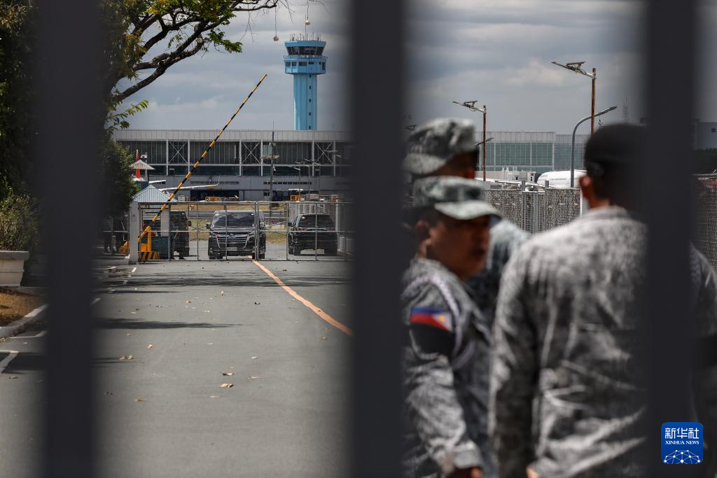 3月11日,在菲律宾大马尼拉地区的帕赛,士兵在菲前总统杜特尔特被拘留地执勤。菲律宾总统府新闻办公室11日发表声明说,前总统杜特尔特当天从境外返回抵达马尼拉后被警方拘留。新华社发