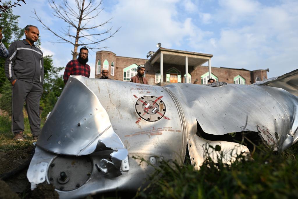 这是2025年5月7日在印控克什米尔首府斯利那加附近的普尔瓦马地区拍摄的飞机残骸。印度媒体报道,至少3架印军战机7日在印控克什米尔地区坠毁。新华社发(贾韦德·达尔摄)