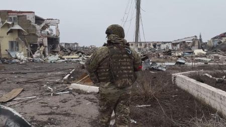 这张俄罗斯国防部2025年3月13日发布的视频截图显示,俄军士兵进入库尔斯克州的一个定居点。新华社发(俄罗斯国防部供图)