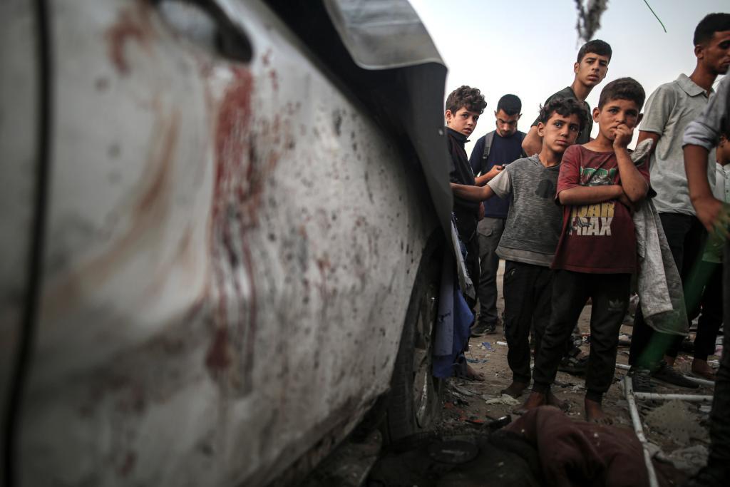 8月11日,人们查看加沙城希法医院附近的以军袭击现场。新华社发(里泽克·阿卜杜勒贾瓦德摄)