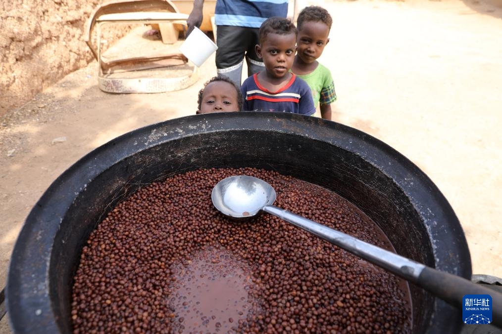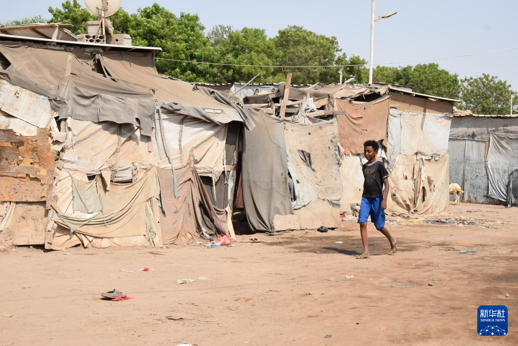 8月12日,在苏丹首都圈恩图曼市北部菲塔伊哈卜社区,孩子们在一处慈善厨房排队等着领取免费餐食。新华社发(穆罕默德·海德尔摄)