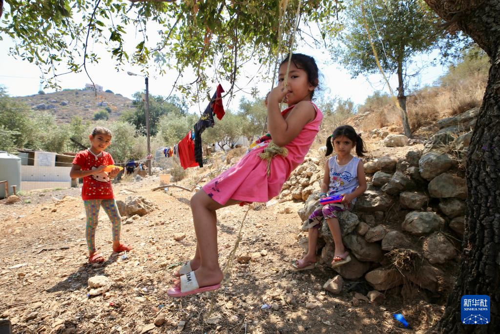 8月14日,在黎巴嫩凯泰尔迈耶难民营,流离失所的叙利亚儿童在一处难民营玩耍。新华社发(阿里·哈希绍摄)