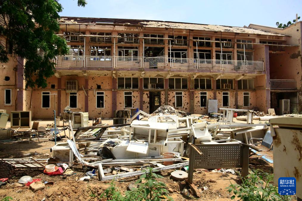 8月12日,在苏丹首都喀土穆中部,被苏丹武装部队与苏丹快速支援部队的武装冲突所损毁的牙科教学医院一片狼藉。新华社发(穆罕默德·海德尔摄)