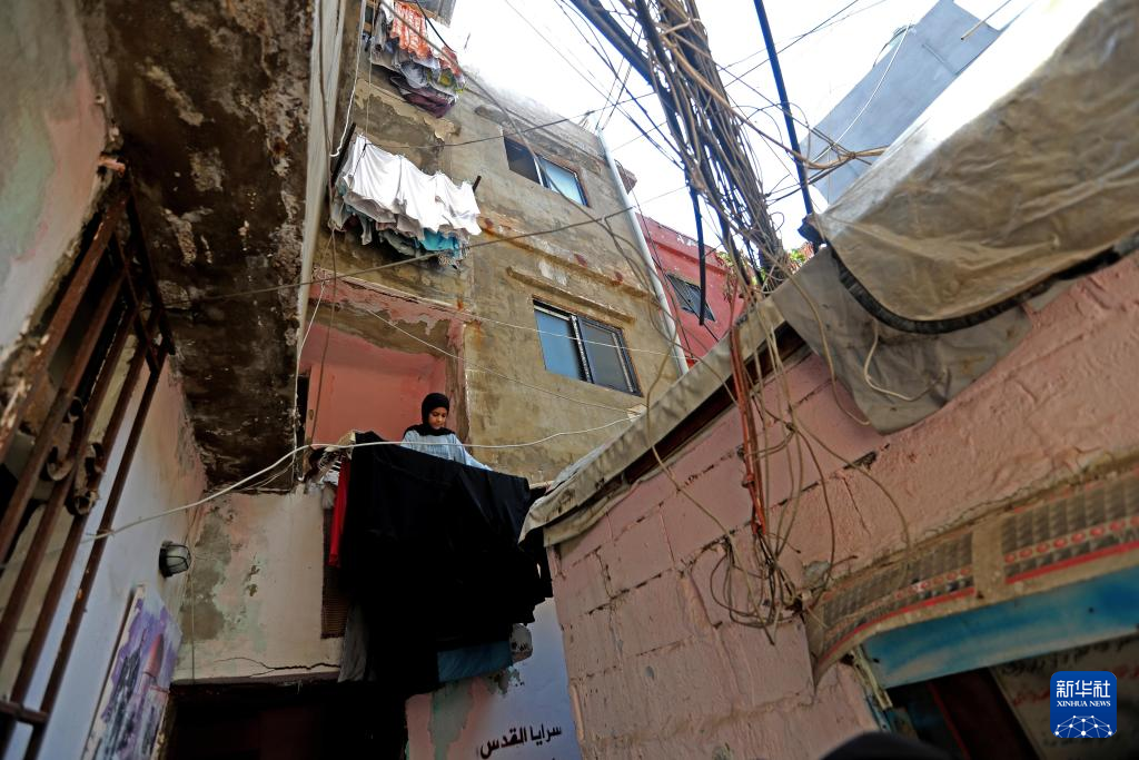 8月14日,在黎巴嫩贝鲁特附近的一处巴勒斯坦难民营中,一名女孩在晾晒衣物。新华社发(比拉尔·贾维希摄)