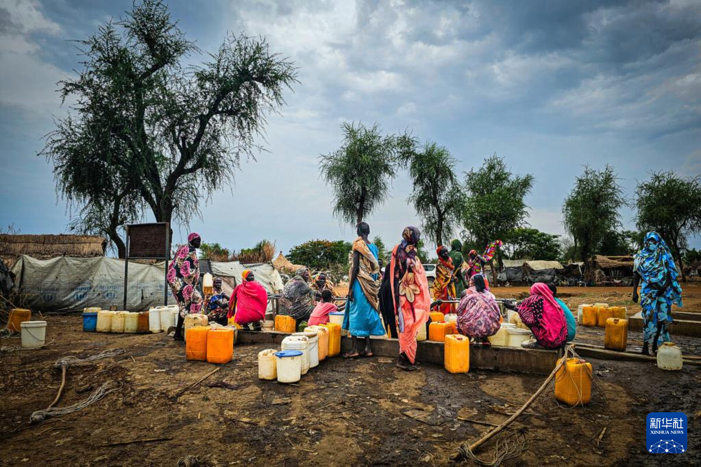 8月8日,在苏丹北达尔富尔州塔维拉镇,流离失所的人们排队等待打水。新华社发(世界粮食计划署供图)