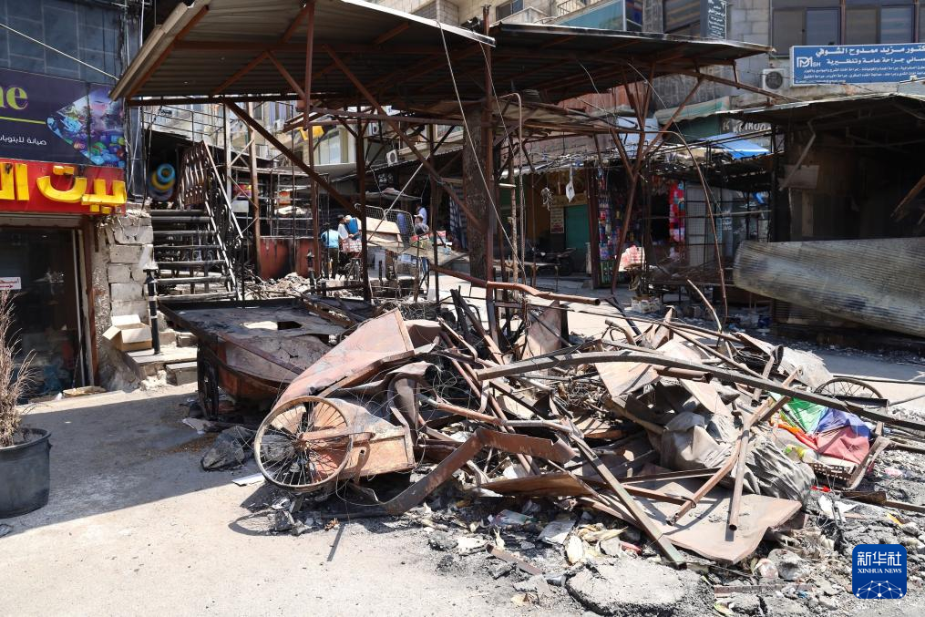 这是8月14日在叙利亚苏韦达省拍摄的持续冲突后留下的商铺废墟。新华社发(蒙塞夫·梅马里摄)