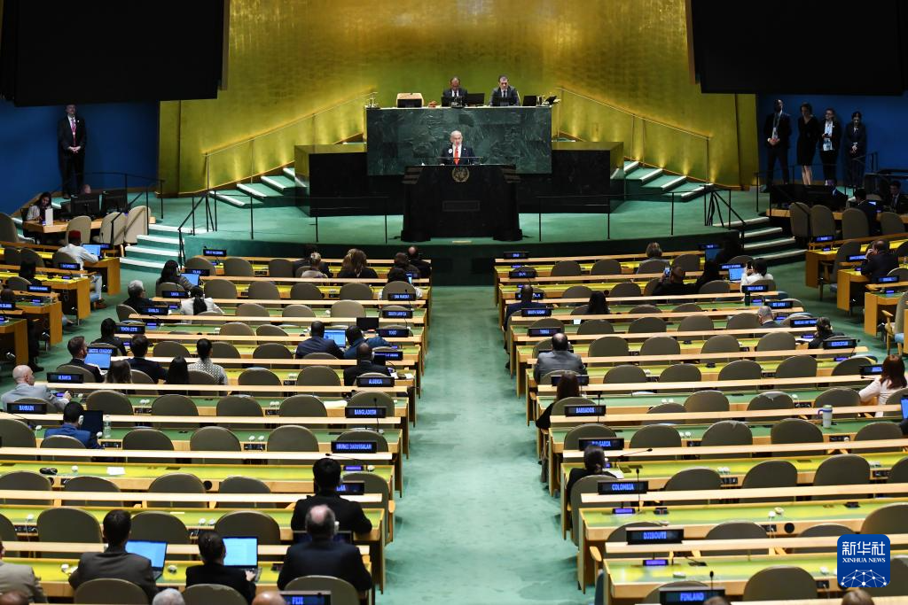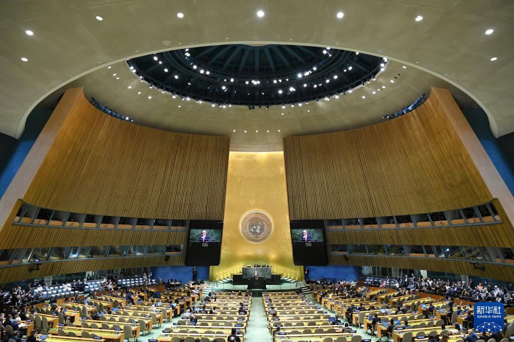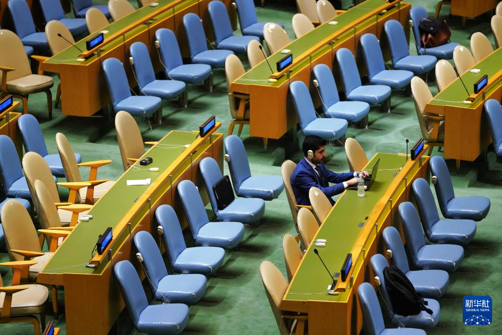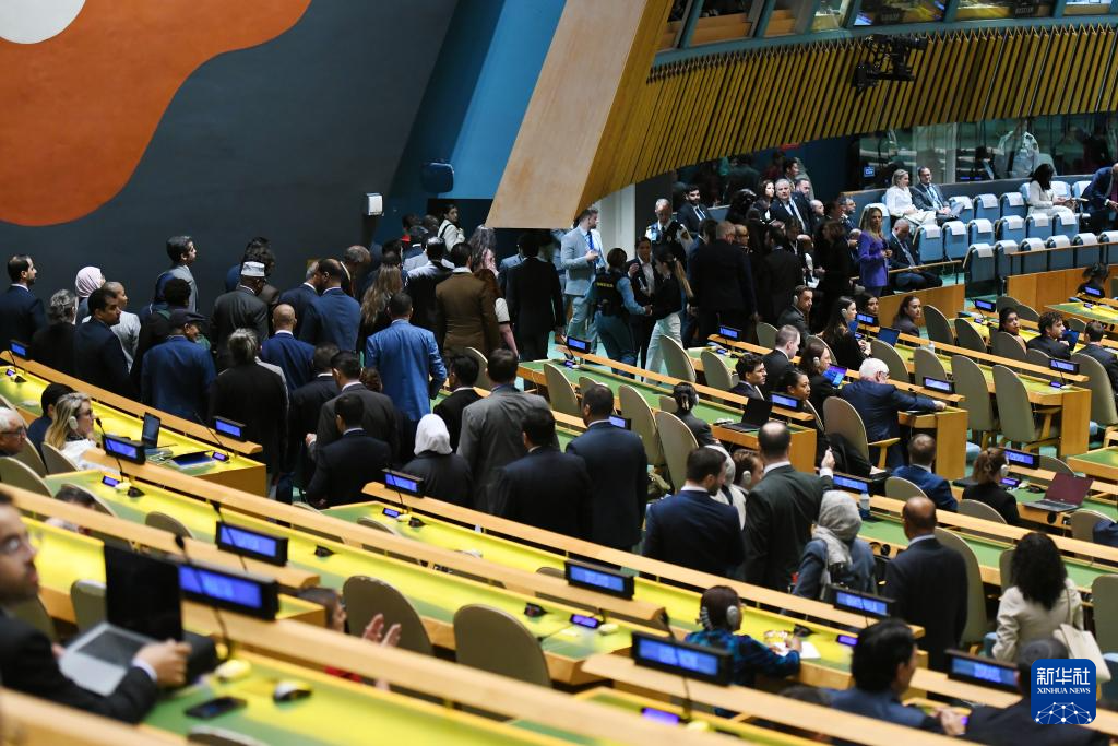 9月26日,在位于纽约的联合国总部,众多代表退场抗议。新华社记者李睿摄