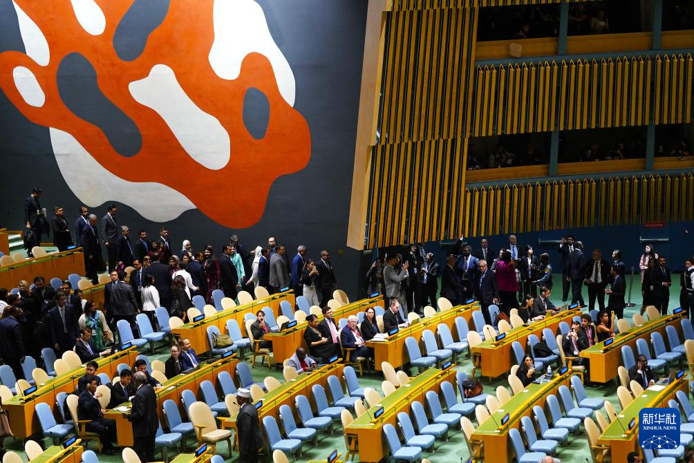 当日,以色列总理内塔尼亚胡在第80届联合国大会一般性辩论发言。众多联合国会员国代表起身离席,退场抗议。新华社记者吴晓凌摄