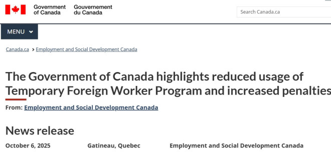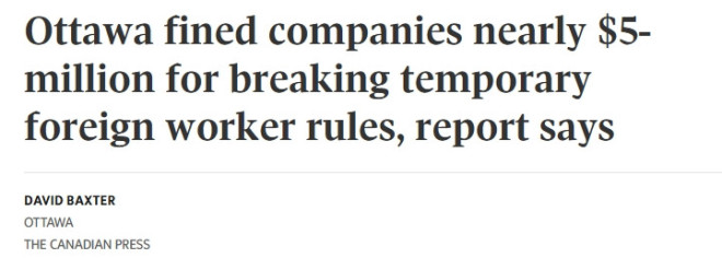 加拿大政府最新数据显示,渥太华在过去一年中对多家违规雇主开出了近500万加元罚款,原因是这些企业未遵守临时外劳计划(Temporary Foreign Worker Program, TFWP)的相关规定。